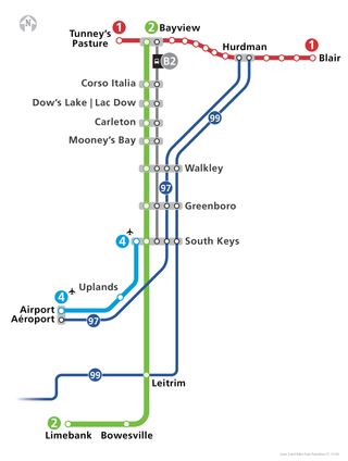 Aucun changement n'est apporté au service d'autobus pendant les phases 1 et 2. Le circuit 97 continuera de circuler toutes les 15 minutes, desservant South Keys et l’Aéroport, en parallèle de la Ligne 4 entre ces deux stations. L'autobus continuera à circuler jusqu'en avril.