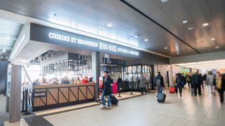 Patienter pour votre vol peut se faire en plein confort. Profitez de repas chauds, de collations, de boissons, d'espaces de travail, d'une variété de sièges et d'une vue spectaculaire sur l'aérodrome.